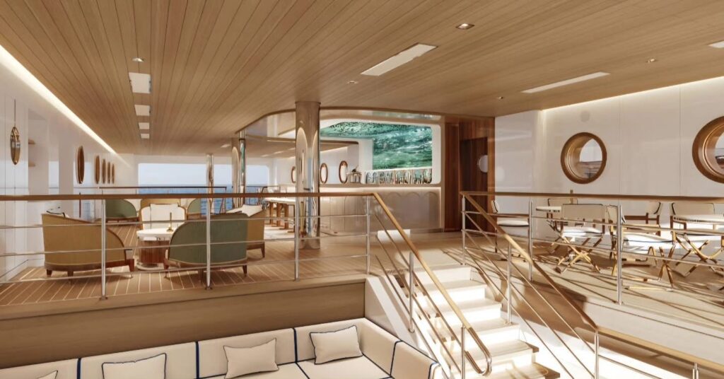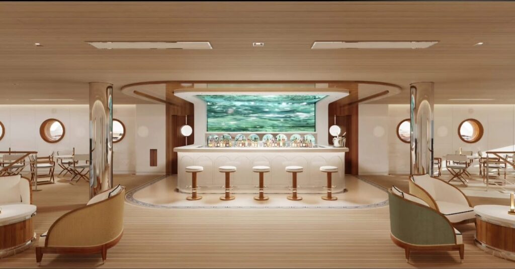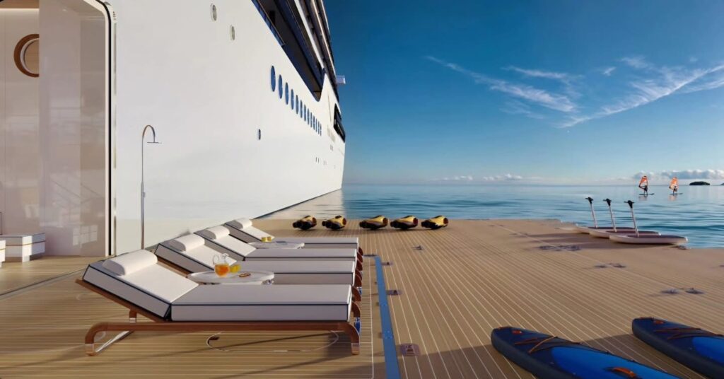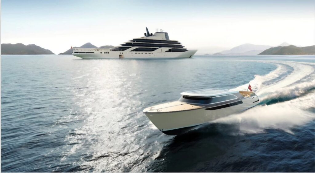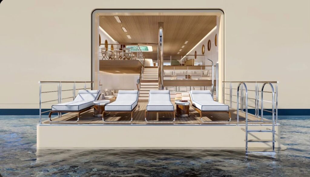 Inspirado en las terrazas frente al mar del sur de Francia el diseño interior ha sido desarrollado por la firma sueca Tillberg Design conocida por su enfoque escandinavo minimalista y elegante que ahora se materializa en esta marina única en su tipo capaz de acoger hasta 105 invitados en una atmósfera que combina sofisticación y funcionalidad. La experiencia se completa con el concepto Grand Touring que permite a los viajeros descubrir costas remotas y clubes de playa exclusivos con dos opciones de traslado desde el yate la primera es Limo Tender una embarcación de 10 metros con servicio privado y capitán diseñada para explorar con comodidad y estilo la segunda es Beachlander una lancha de alta velocidad ideal para vivir aventuras costeras hacer snorkel o simplemente llegar a la orilla en destinos únicos como Monte Argentario en Italia o la isla Mayreau en el Caribe.
