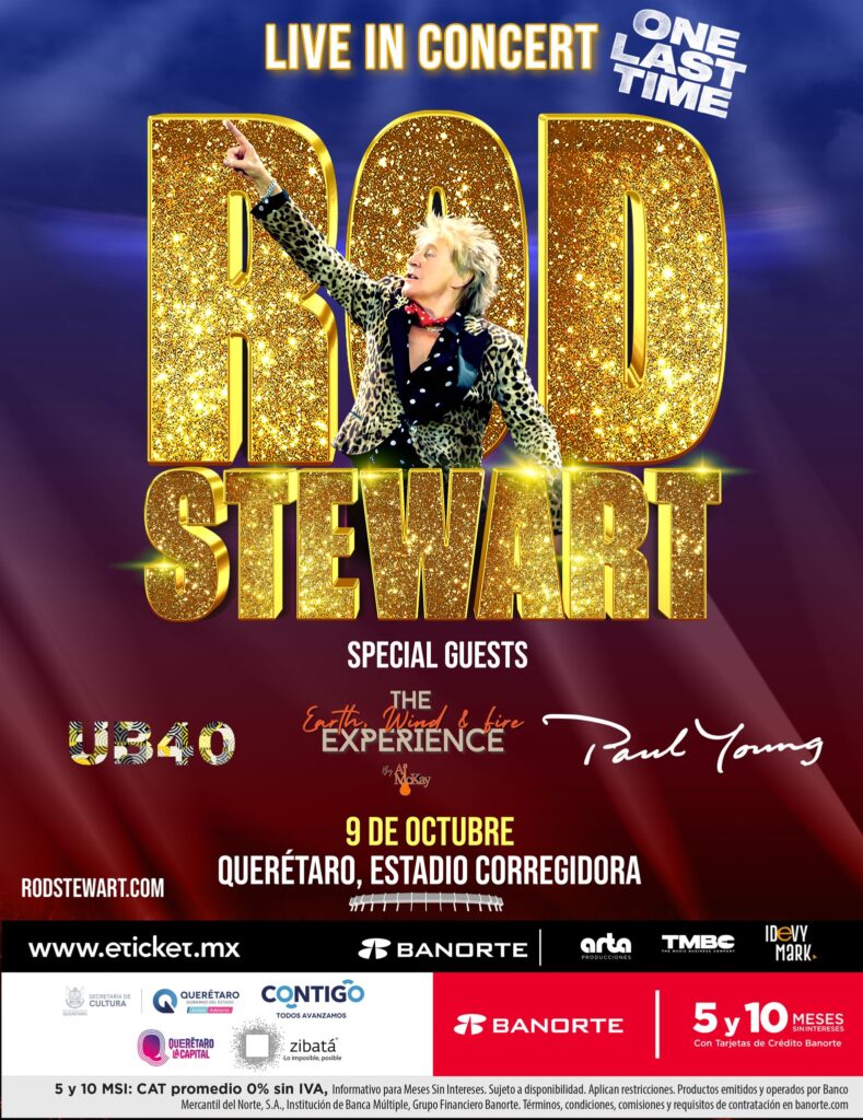 Este concierto no es solo un reencuentro con Rod Stewart, sino una auténtica celebración de la música de los años 1970, 1980 y 1990 con artistas de talla internacional: UB40: La emblemática banda británica de reggae-pop volverá a encender los corazones con éxitos como Red Red Wine, Can’t Help Falling in Love y Kingston Town. Su sonido distintivo ha llevado el reggae a todos los rincones del mundo. Earth, Wind & Fire Experience by Al McKay: Dirigido por el legendario guitarrista original de Earth, Wind & Fire, esta agrupación ofrece una experiencia fiel al legado de la icónica banda de funk y soul. Temas como September, Let’s Groove y Boogie Wonderland forman parte del repertorio festivo y vibrante que traerán a Querétaro y Paul Young: El cantante británico de pop-soul, conocido por baladas como Everytime You Go Away y Come Back and Stay, aportará un toque melódico y nostálgico con su inconfundible voz que marcó los años 1980.