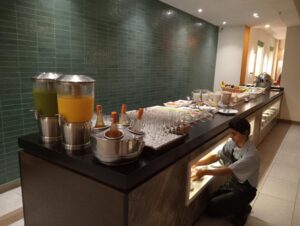 —Sí, el buffet normal lo servimos de lunes a viernes de siete de la mañana a doce del día, y sábado hasta la una de la tarde. Domingo de siete a diez de la mañana.