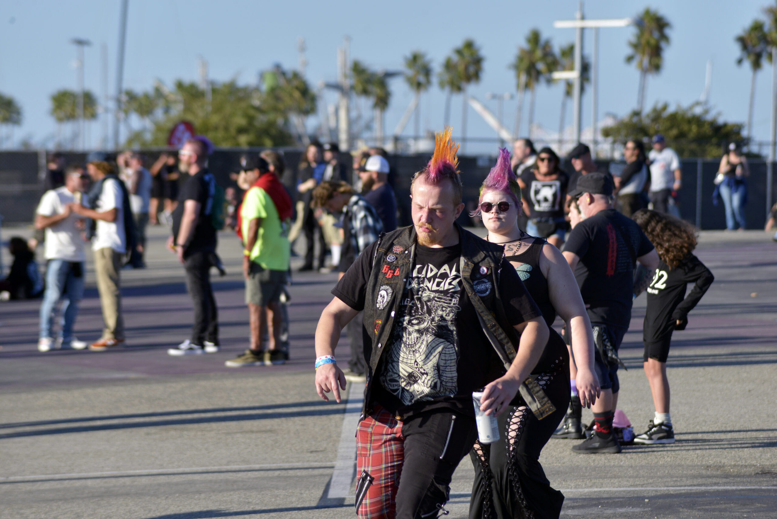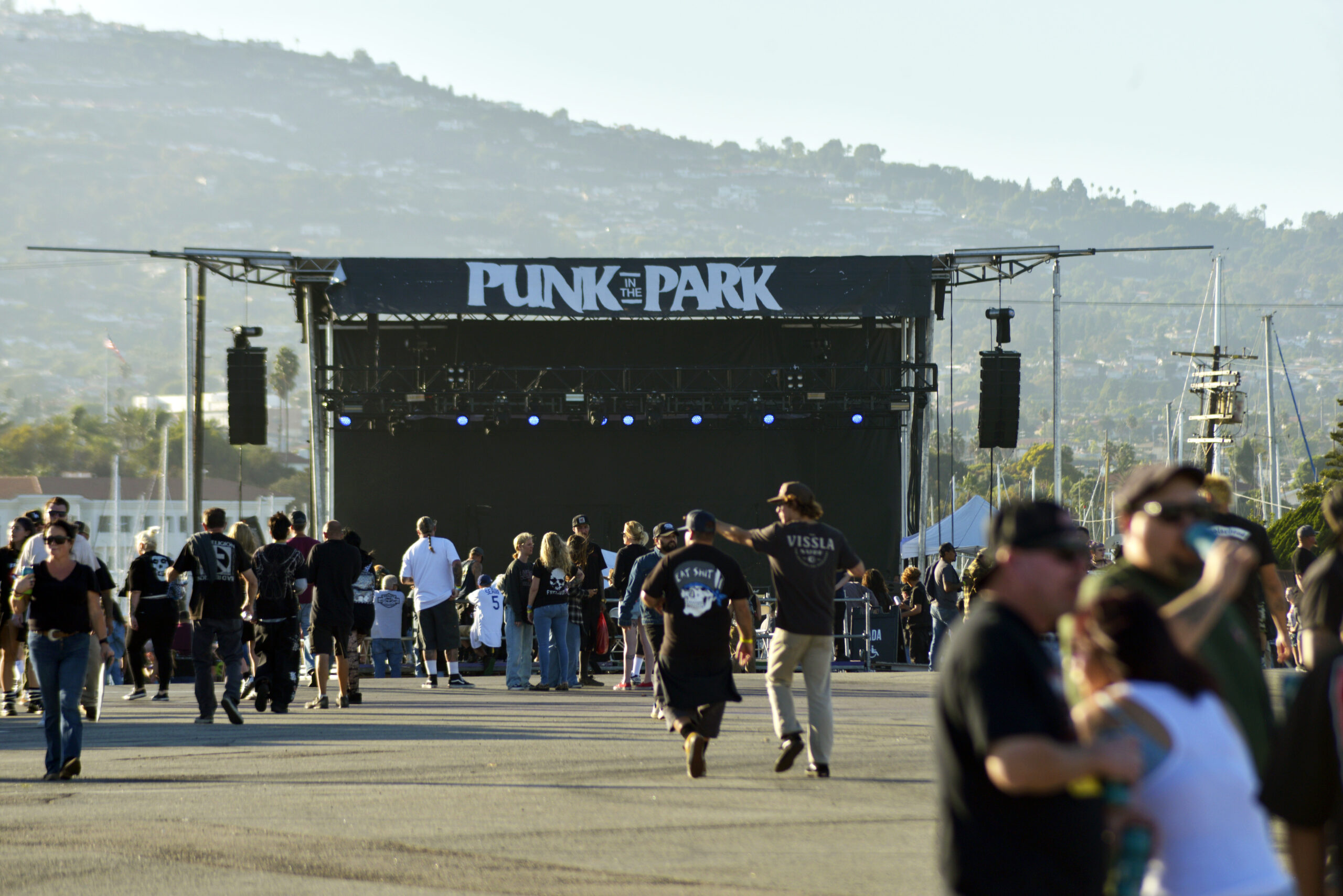 Pero también existe la ciudad de San Pedro, que surgió como un asentamiento portuario paralelo al desarrollo del puerto. Originalmente habitada por comunidades indígenas, la llegada de inmigrantes europeos y asiáticos en el siglo XIX consolidó una población diversa, cuya vida giraba en torno al comercio marítimo y la pesca. Hoy, San Pedro ofrece una rica combinación de historia, gastronomía y cultura. Sus calles albergan museos como el Cabrillo Marine Aquarium, murales históricos, tiendas locales y restaurantes que destacan la cocina de mariscos fresca. La zona también es conocida por sus festivales culturales y actividades recreativas, desde paseos en barco hasta senderos costeros, que permiten disfrutar del Océano Pacífico y del ambiente portuario. Tomarse el tiempo para llegar a Punk in the Park, era gratificante por las bellas vistas que ofrece la zona y todo lo que se puede hacer alrededor del lugar.