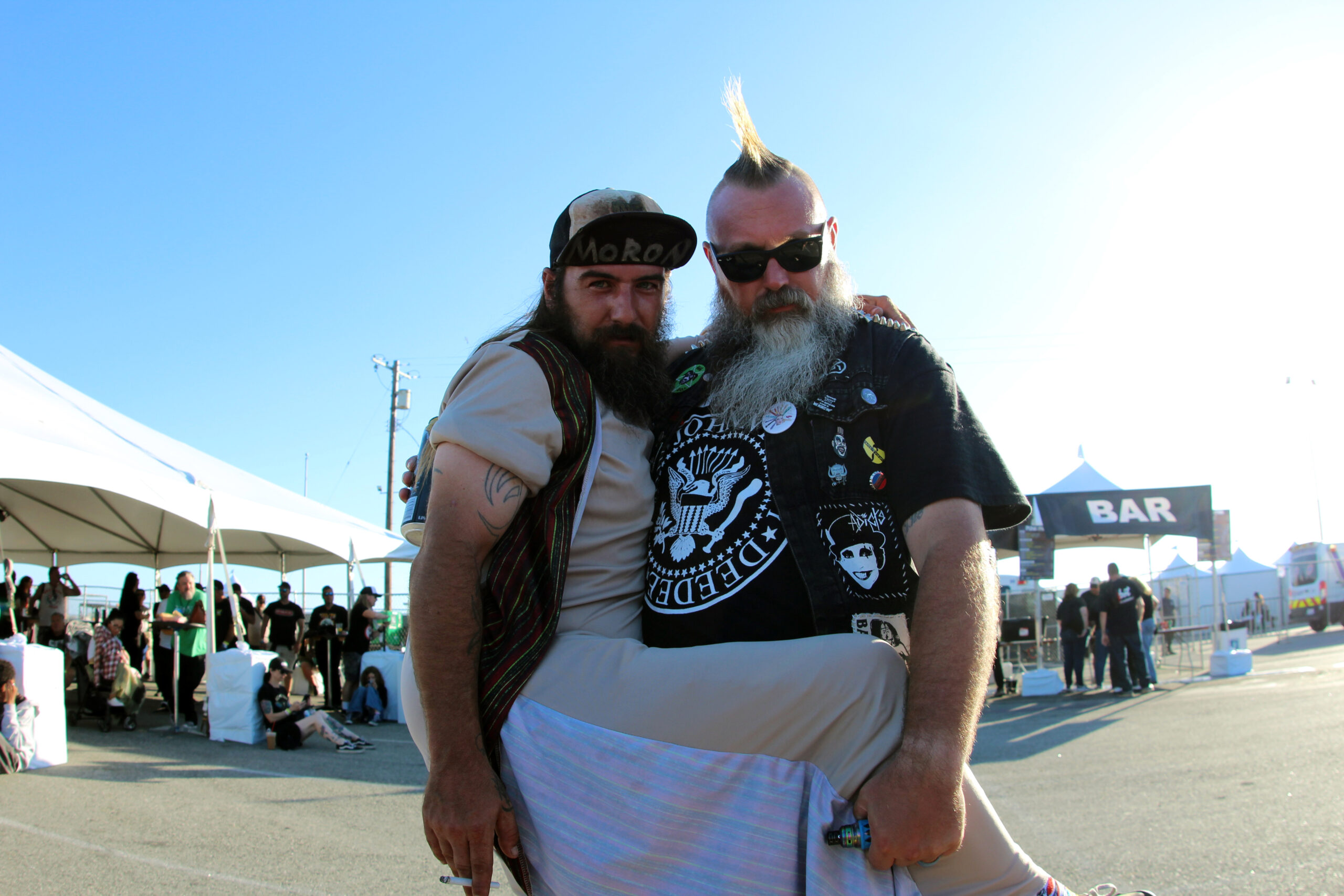 Dentro de un patio de maniobras, con el mar de fondo y palmeras alrededor era la bella postal que nos compartía el evento. Dentro de un horario de 12 del día a 3 de la tarde, varios productores de cerveza artesanal ofrecieron pruebas ilimitadas por un precio extra de quince dólares. Mercadito de venta de vinilos, playeras, stickers, tienda de puros y habanos y en la parte de comida, propuestas veganas y carnívoras. Esto es un punto importante a recalcar que los precios de entrada para el festival, son precios asequibles, donde se puede asistir sin desfalcar el bolsillo a diferencia de otros eventos que los precios están por las nubes. Punk in The Park, ofrecía sus precios a 150 dólares por ambos días.