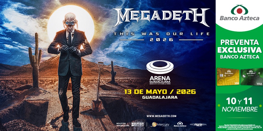 La leyenda del metal, Megadeth, está lista para rugir por última vez en tierras mexicanas, y Guadalajara será una de las ciudades privilegiadas en formar parte de este cierre histórico. Megadeth, pioneros absolutos del thrash y una de las bandas más influyentes en la música pesada mundial, tomará la Arena Guadalajara el 13 de mayo de 2026, para despedirse definitivamente de su público tapatío con su This Was Our Life Tour. Tras una espera de casi 10 años, Dave Mustaine, tendrá un concierto espectacular en la ciudad.