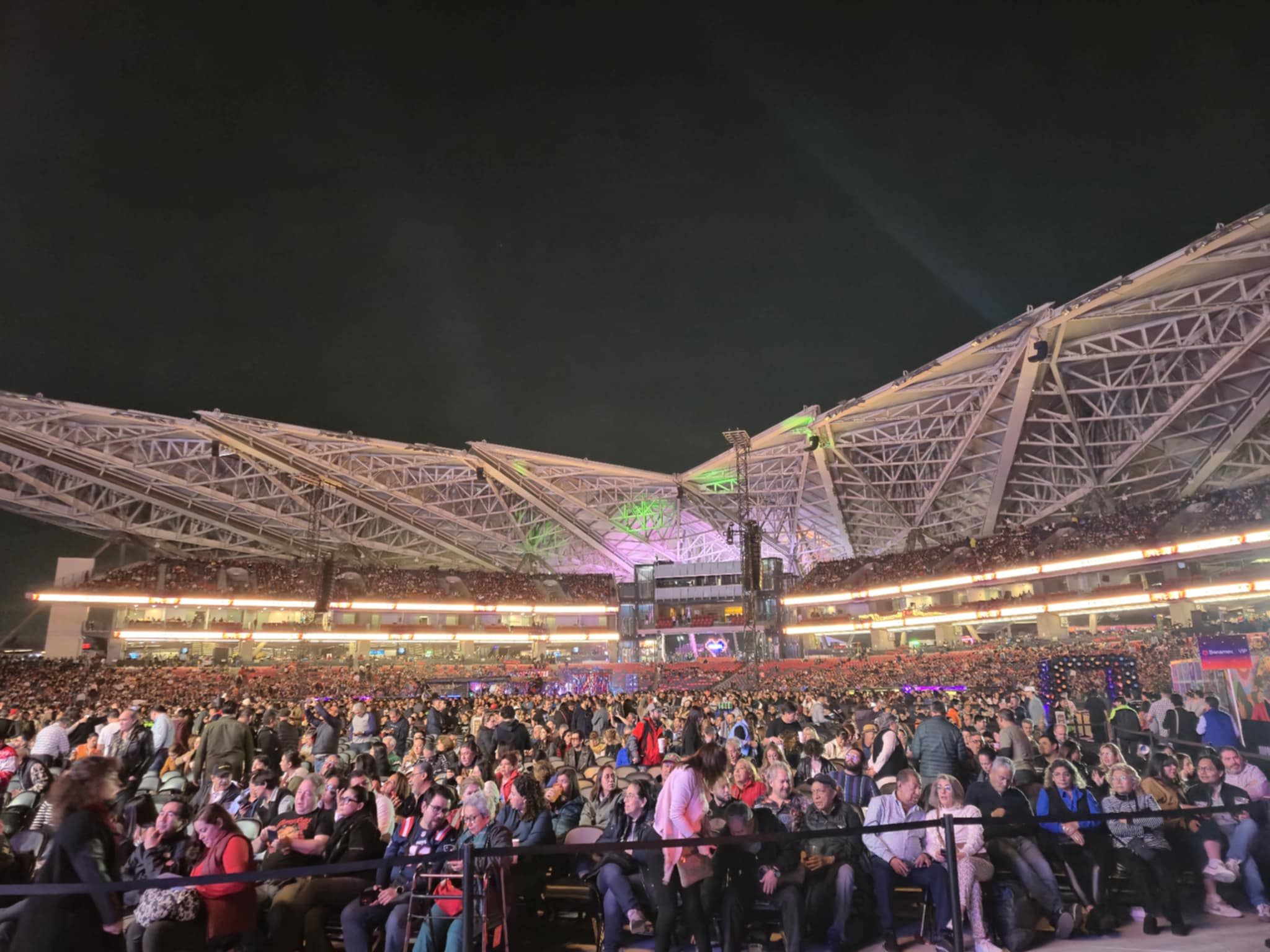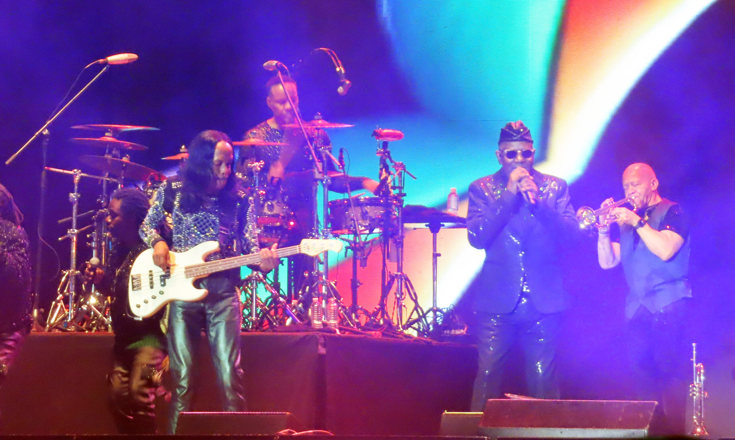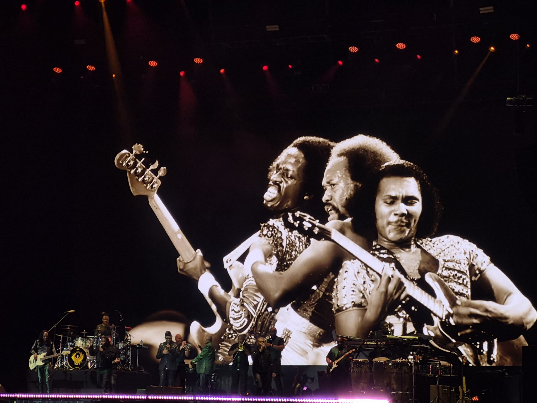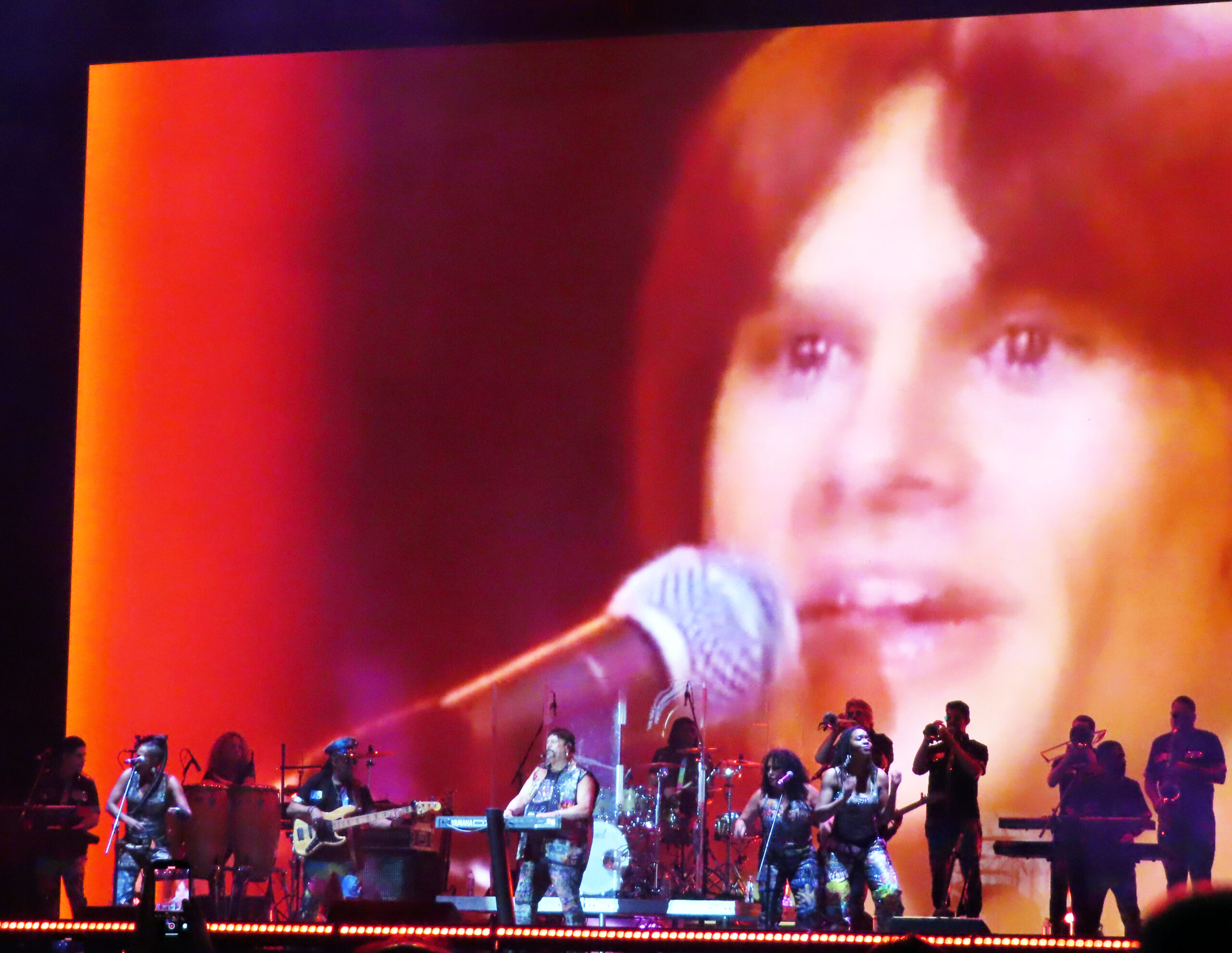 Tras unos minutos, se prendió una enorme imagen con un contador con el logo de Earth, Wind & Fire; era el momento de apreciar a los angelinos en acción. Con una breve introducción de videos de sus más grandes discos y una voz de ultratumba mencionando “Earth, Wind & Fire”, las luces se encendieron y el estadio estalló con el tema “Shining Star”. Los metales y el bajo de Verdine White fueron una cachetada a los sentidos: el bajo sonaba y vaya que sonaba. Cerca de 30 mil personas celebraban el regreso de la banda a tierras mexicanas. La gente abarrotó los pasillos para ver de cerca a los integrantes con sus pantalones brillantes, túnicas relucientes y chaquetas resplandecientes. La energía también era evidente en el escenario: mientras el vocalista Philip Bailey y los demás cantantes encabezaban el espectáculo al frente, los percusionistas y la sección de metales armaban una fiesta en la parte trasera.