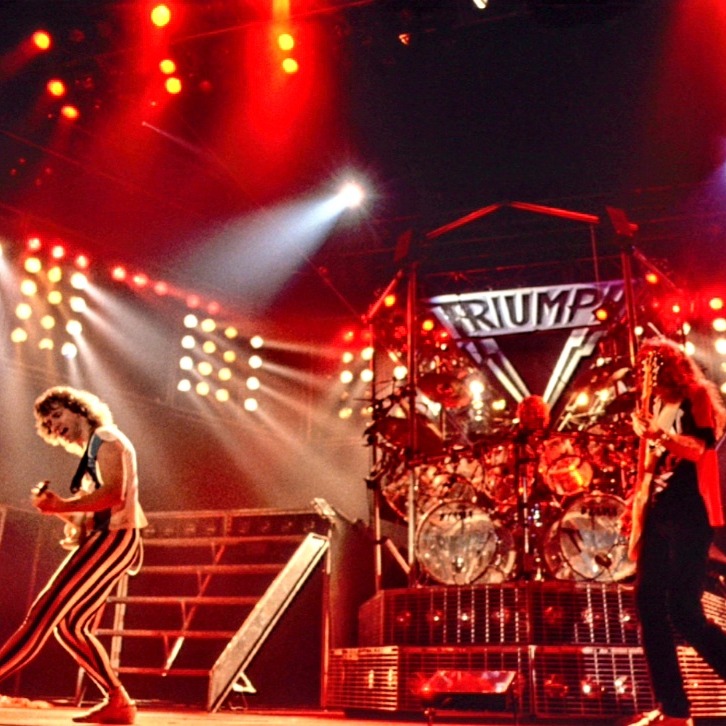 Canciones como “Lay It on the Line”, “Magic Power” y “Fight the Good Fight” se convirtieron en himnos generacionales, reforzados por producciones escénicas pioneras que integraban pirotecnia, iluminación láser y una puesta en escena teatral que marcó un antes y un después en los conciertos de gran formato. Triumph también dejó huella en festivales históricos, como el US Festival de 1983, donde se presentaron ante más de 500 mil personas.