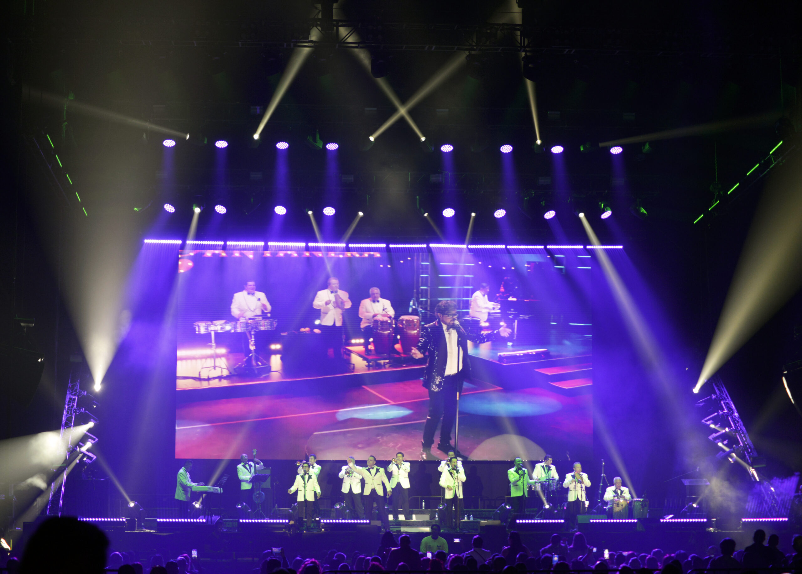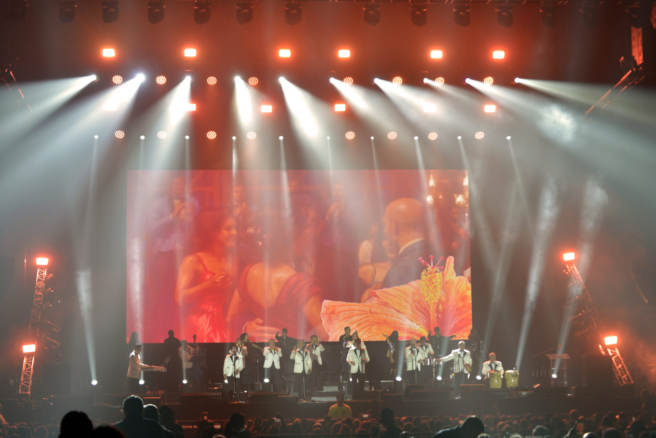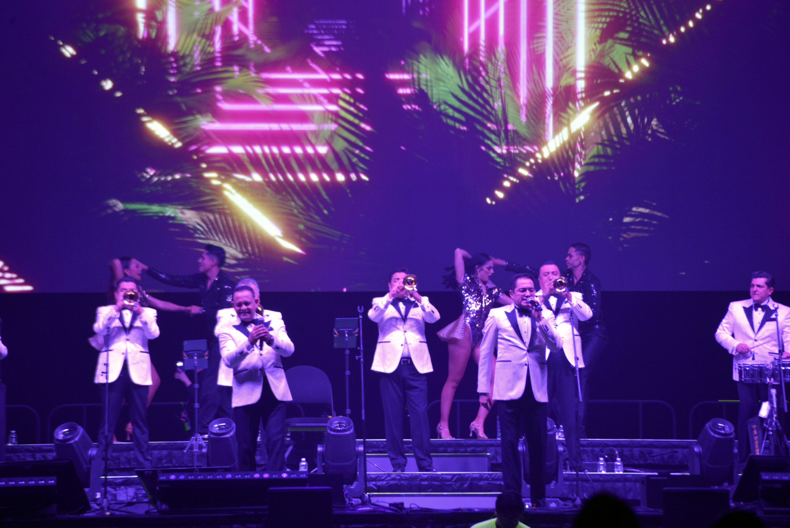 Cerca de las 9:30 de la noche, con una introducción propia de una marca de estas dimensiones se explico lo que era la Sonora Santanera, lo que han logrado y lo que grabaron, para dar paso a «LaBoa», con una entrada estrepitosa con pirotecnia, luces, bailarines y los músicos de smoking blanco, remembrando los grandes bailes del Salón México. Con un repertorio cargado de clásicos que han acompañado a varias generaciones, la agrupación logró que el público no permaneciera sentado y que la pista imaginaria se extendiera por pasillos, butacas y balcones. Bomboro Quiñá, Quiña”, tema escrito por el comediante Zamorita, que sirvió como detonante para que el público comenzara a levantarse de sus asientos. A partir de ese momento, la música no dio tregua. Clásicos como “El Mudo”, mantuvieron el ritmo encendido, hasta que “El Nido” abrió paso a la aparición de Kika Edgar, invitada especial de la noche, quien fue recibida con una ovación. La colaboración continuó con temas como “Yolanda”, en un segmento donde la voz de Edgar se integró con naturalidad al sonido característico de la Sonora. Desde el escenario, uno de los vocalistas destacó su participación y su calidad interpretativa, subrayando el vínculo artístico que se ha construido con ella a lo largo de distintas presentaciones. El momento fue aprovechado para invitar al público a ponerse de pie y dejarse llevar por canciones como “Mi Capricho”, “Pena Negra” y “Perfume de Gardenias”, que convirtieron La Arena Guadalajara, en una pista de baile colectiva. También se contó con la participación de Luna Manzanares, quien interpreta a Sarabi en el Rey León el musical en Ciudad de México.
